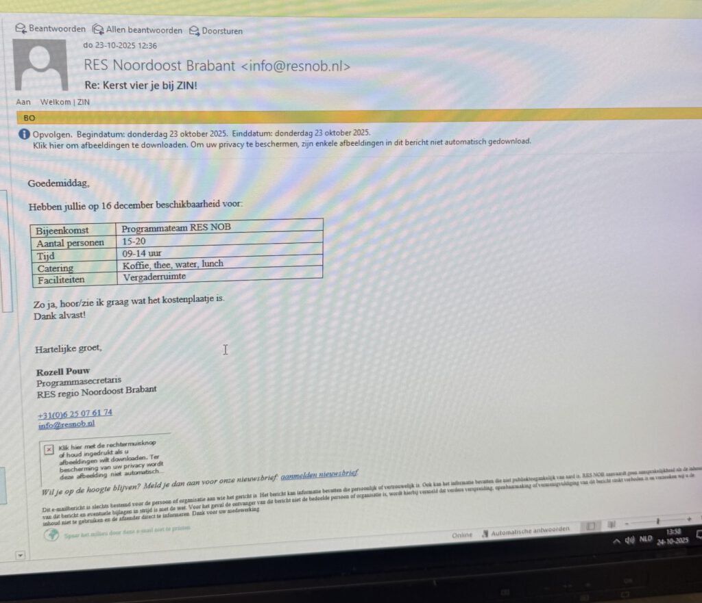 Toen bleek dat de aanvraag van RES nog steeds niet was opgevolgd is,vanwege de urgentie zelf telefonisch contact opgenomen. Tijdens dit gesprek is de status van de aanvraag verduidelijkt en vervolgacties uitgezet, waaronder het verlengen van de offerte en het plannen van een nieuw controlemoment (figuur 11). Hiermee is proactief verantwoordelijkheid genomen zonder het team te passeren, wat past bij de cultuur van ZIN.